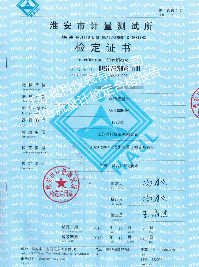 壓縮空氣專用流量計產品檢驗合格報告: