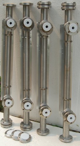 UDZ-4型磁翻板液位計是以浮子內磁鋼驅動雙色磁性片的翻轉來指示液位的一種儀表。主體內磁浮子隨液位的升降而上下運動,同時驅使主體外指示器內的雙色磁性翻轉,有液位時轉示紅色、無液位時轉示黑色。紅色和黑色色帶間的界線即代表液位高度。在指示器左側配有醒目的刻度標尺,從而使液位的指示顯得更加清晰。此款液位計的材質為304內襯四氟材質從而可以耐腐蝕性,適合用于具有腐蝕性的液體不銹鋼內襯四氟防腐磁翻板液位計的采用不銹鋼本體內襯聚丙烯(PP)和聚四氟乙烯(PTFE)工藝,有很高的結構強度和耐腐蝕性,可適用于鹽酸等酸性液體、堿性液體和有機溶劑。但不適合濃縮硝酸、含氯溶劑、芳香劑、脂肪族等介質液體的測量。側裝式內襯防腐磁翻板液位計有不銹鋼主體內襯聚四氟乙烯(PTFE)和不銹鋼內襯聚丙烯(PP)兩種,適合腐蝕性介質的測量。