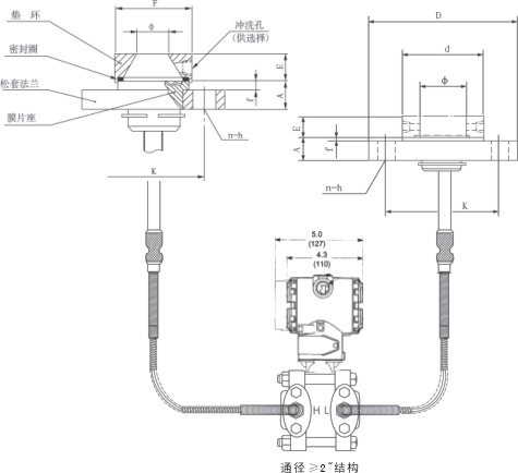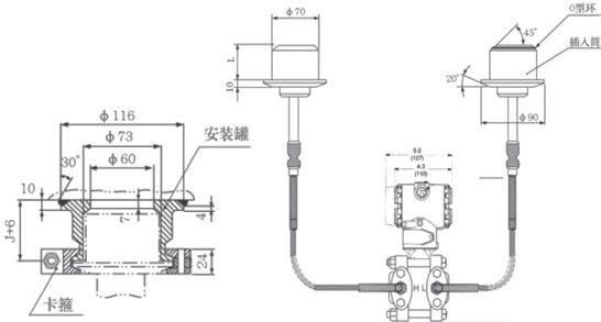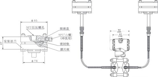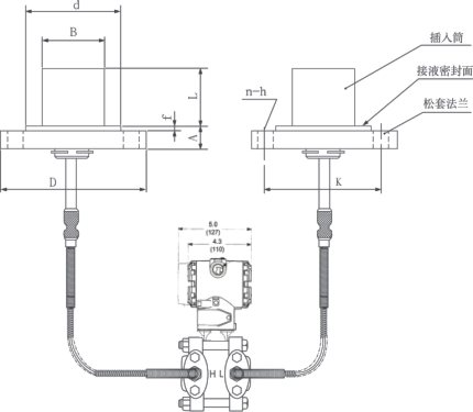 AK-3051DP雙法蘭液位變送器是一種通過安裝在管道或容器上的遠傳裝置來感受被測壓力,該壓力經(jīng)毛細(xì)管內(nèi)的灌充硅油(或其它的液體)傳遞至變送器的主體,然后由變送器主體內(nèi)的δ室和放大線路板,將壓力或差壓轉(zhuǎn)換4~20mA.DC信號輸出(參見結(jié)構(gòu)原理圖)。 |